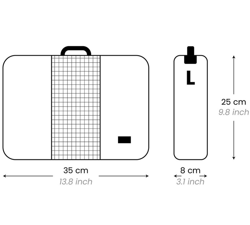 Organização máxima com qualidade de construção de luxo. O Lux Packing Cube é totalmente forrado com poliéster 100% reciclado, oferecendo estrutura duradoura. A parte superior em malha respirável abre amplamente para facilitar a organização e possui zíperes metálicos de duas vias. Espaçoso o suficiente para itens maiores, mas ainda assim compacto o suficiente para caber perfeitamente na sua mala. Acompanha etiqueta de rastreamento OKOBAN. Feito de nylon reciclado com revestimento resistente à água e zíperes YKK® duráveis.