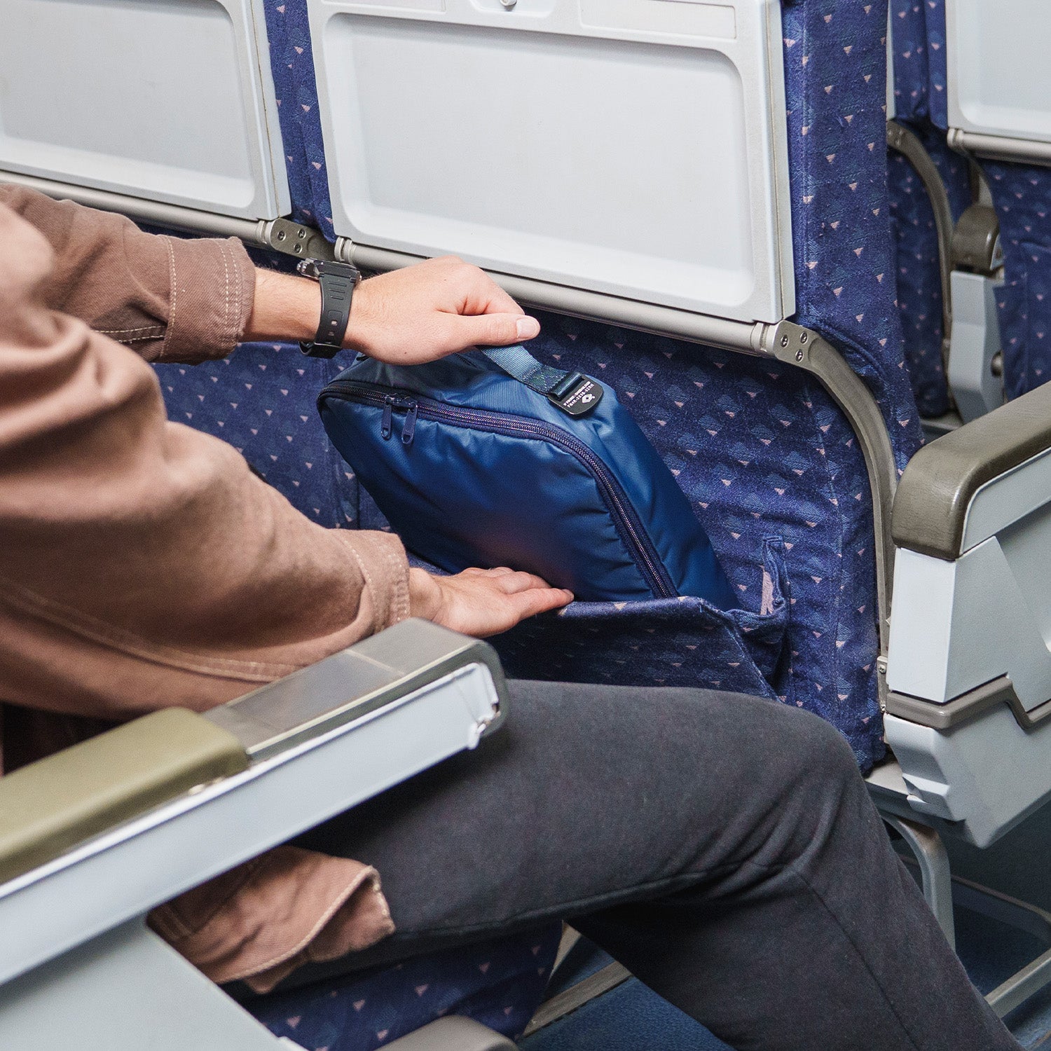 Yes. Its compact size fits easily under most, if not all, airline seats. This is the ideal bag/cube/organiser for your in-flight essentials.
