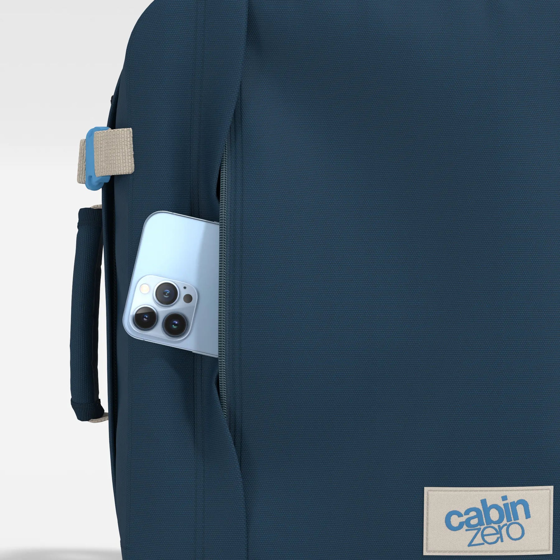 Quick access zip pocket on the front panel