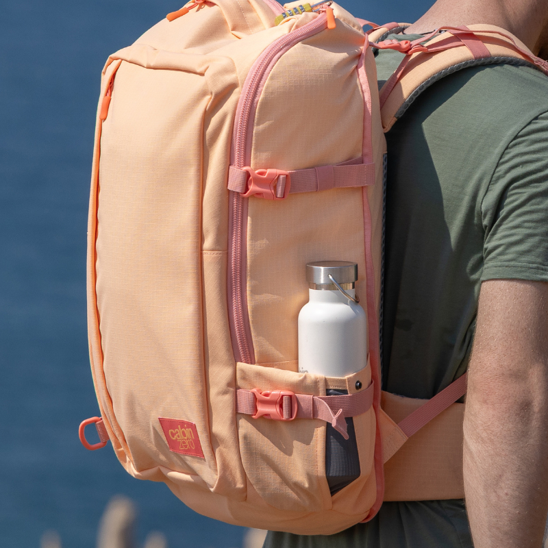 Push the limits with the ADV backpack in Moonstone. The padded waist belt and sternum strap provide added comfort for long hauls. A U-shaped clamshell compartment and a water-resistant build ensure this cabin bag is ready for wherever your next leap takes you. Available in 32L and 42L.
