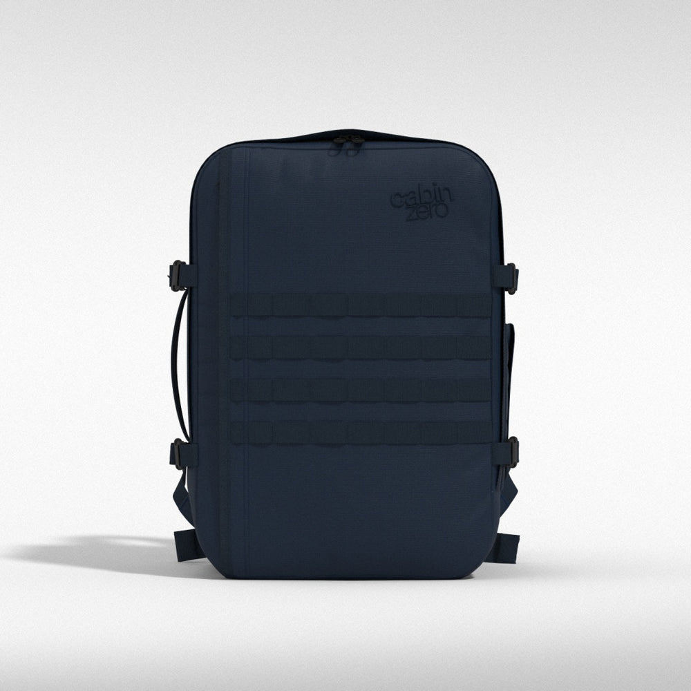 The Military backpack is the max-size carry-on built with grit in mind. Strong fabric, reinforced construction and a no-nonsense design to survive rough transport and hard miles. With ventilated padding, a chest belt, and a hip strap, it takes the weight off your shoulders where it counts.